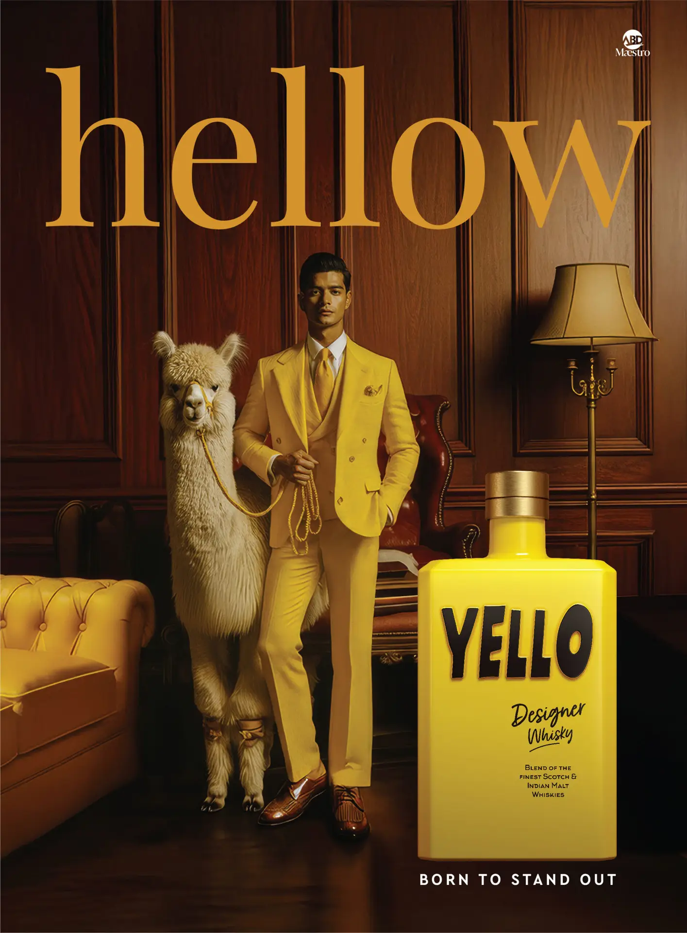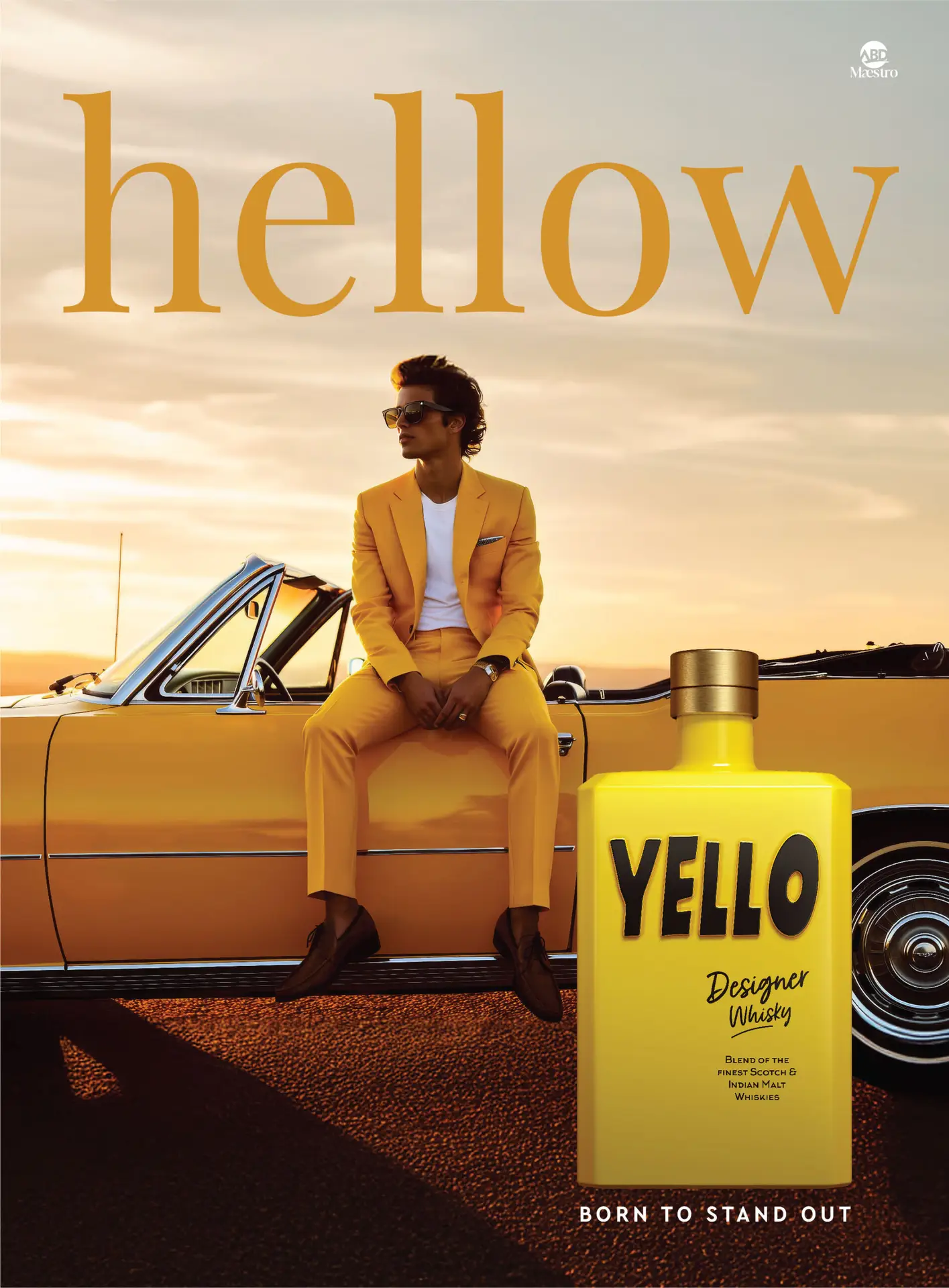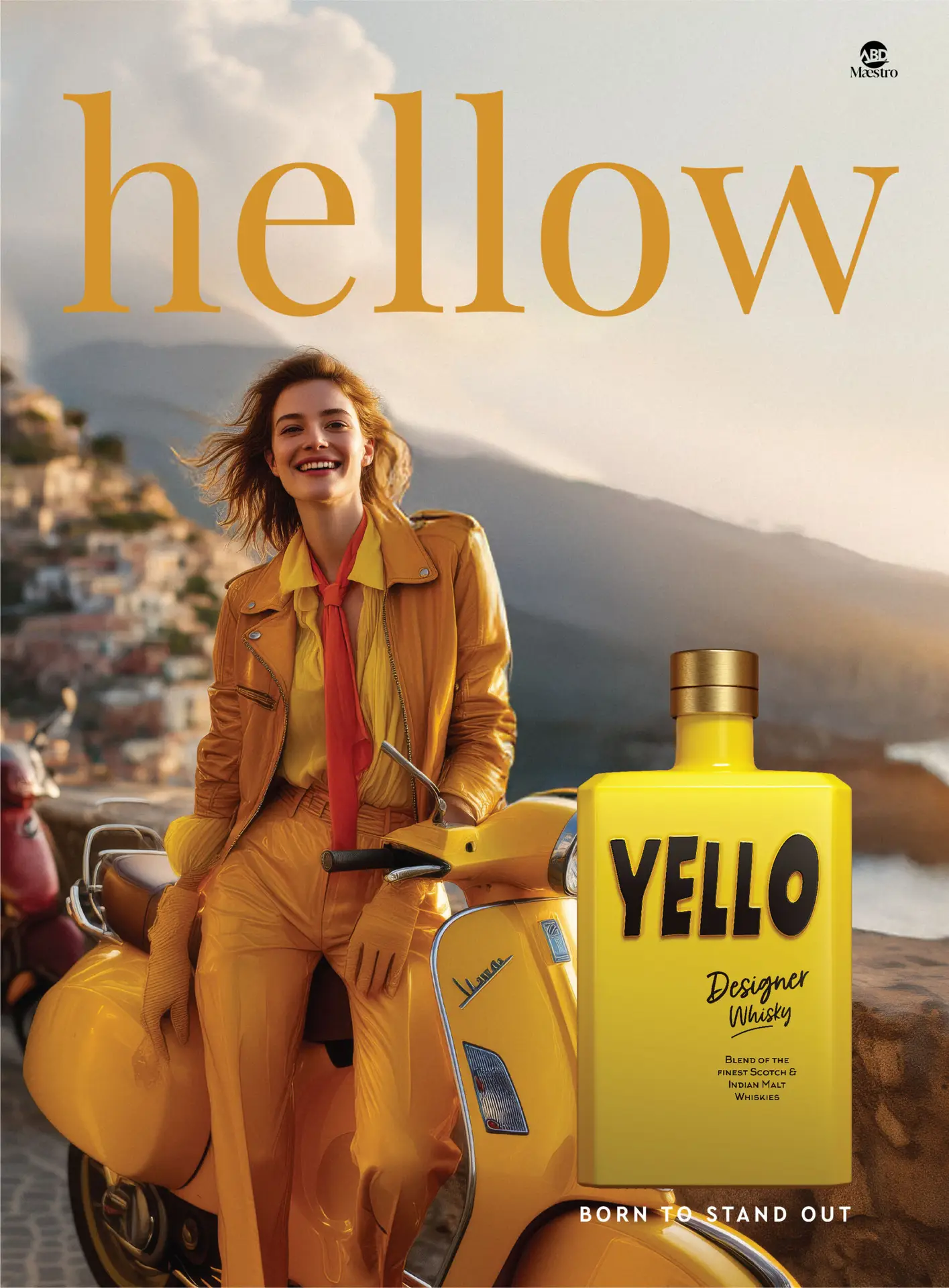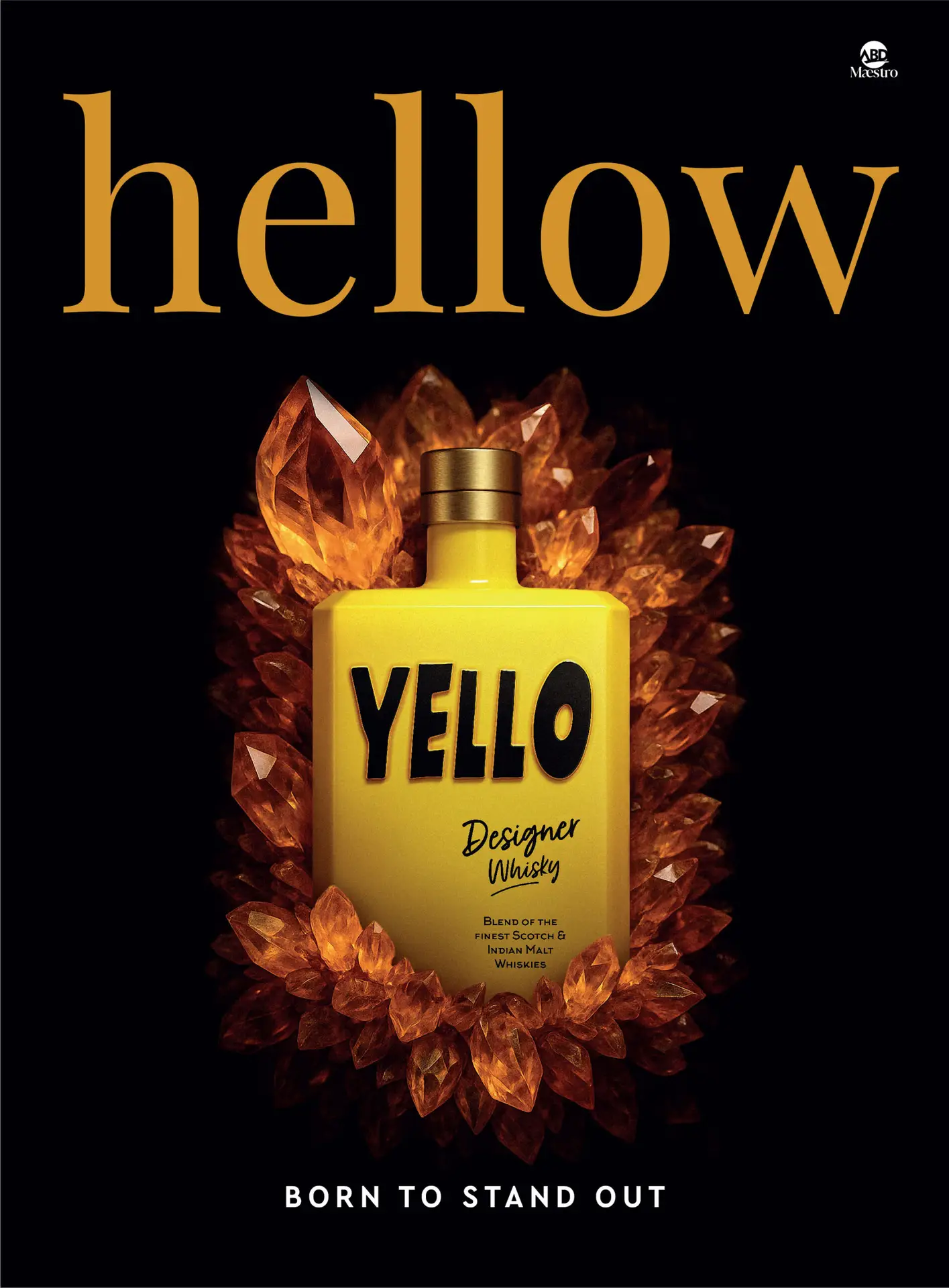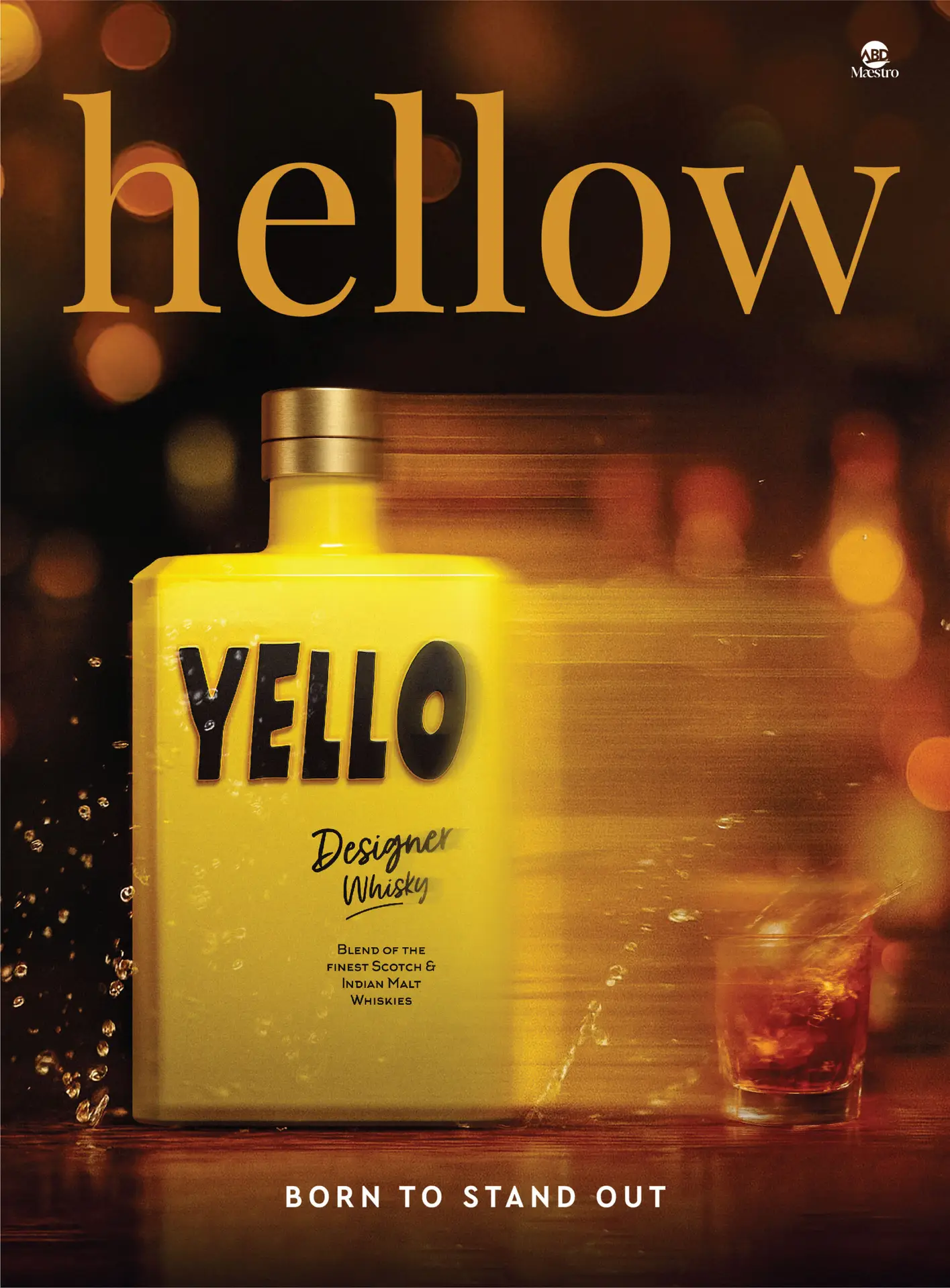 YELLO IS DESIGNED AS A CONTEMPORARY CROSS-CONTINENTAL BLEND. IT IS A FUSION OF FINE HIGHLAND AND SPEYSIDE SCOTCHES, WITH TOP-QUALITY INDIAN MALT WHISKIES.